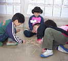 つみかさなった棒を,ほかの棒に触れないように,取っていく遊び。