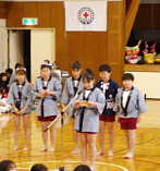 6年生が太鼓の演奏を披露しました。大太鼓と締め太鼓のいきがあいました。 そのあと,太鼓の演奏をバックに北っこソーランを4・5・6年生が踊りました。