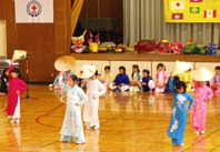韓国の音楽”アリラン”をリコーダーと韓国の太鼓(チャンゴ,プク,ケンガリ,チン,ソゴ)で演奏をしました。演奏に合わせて踊りました。